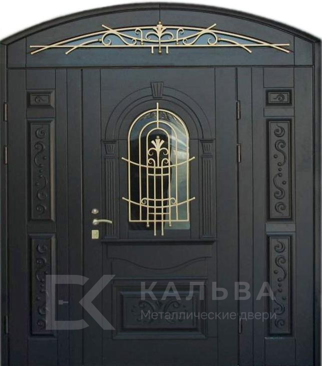 Фото «Железная арочная дверь со стеклом и ковкой для частного дома №14»